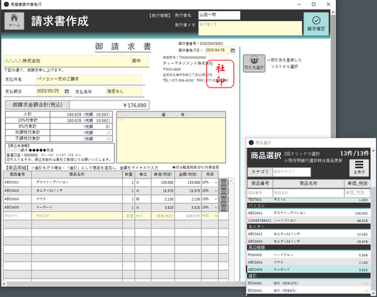 作成した見積書や請求書はそのまま印刷やPDF化がおこなえます。